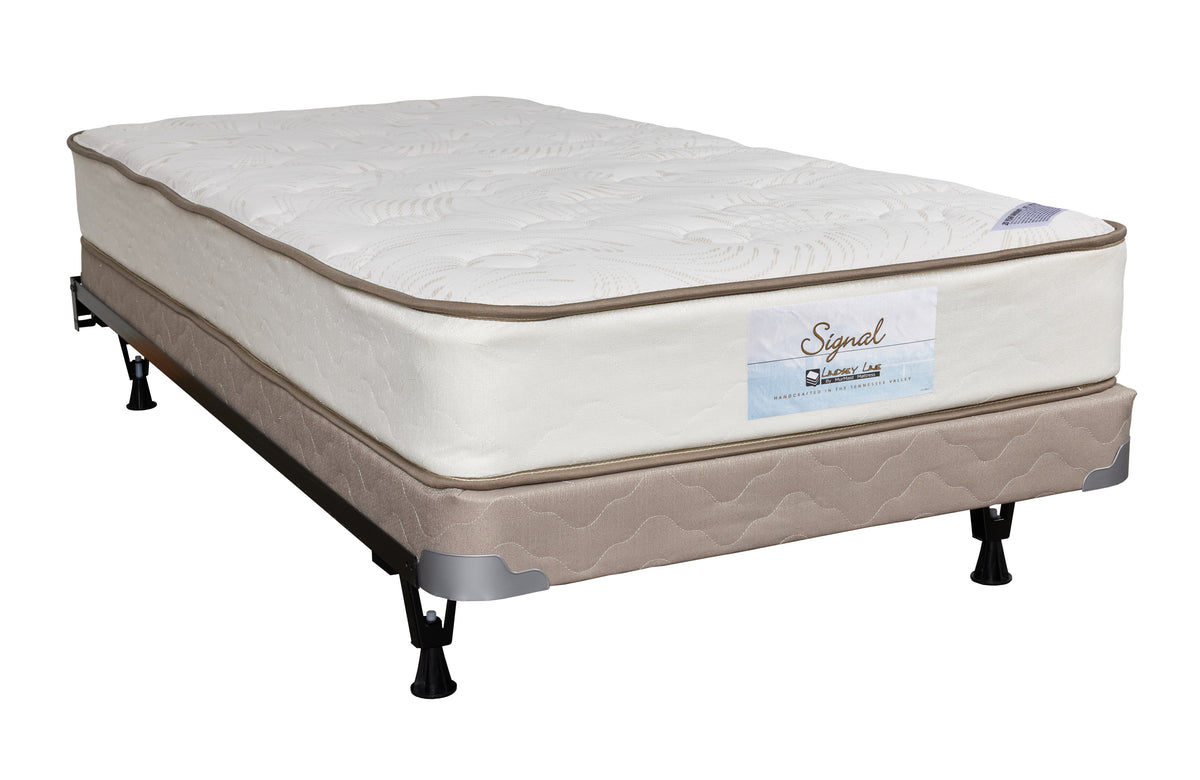 Signal Mountain has been a staple in our community dating back to pre-Civil War times; when we decided to launch the Lindsey Line Premium Collection, we knew that a strong foundation would be needed which is why we have begun with the series of Signal Mattresses. Our Signal Firm at its core uses a Bonnell innerspring coil system with reinforced edges for maximal surface area usage. To provide the firm feel we have used 1” of crushed and compacted fiber layered underneath the quilted top which has firm foam inside the stitching. This premium value offering is great starter for kids transitioning into their first bed or for your guest room.